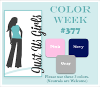 Welcome to my third guest appearance at Just Us Girls. This type challenge happens to be one of my favorite... Color challenges. Before I get to the color scheme I want to share my card for today, enjoy!